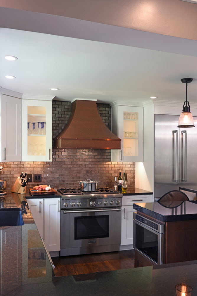 Originally a smaller kitchen with a separate eating area. The new layout created a larger kitchen for a busy family that still values family time. The kitchen sink was relocated to an exterior wall and larger windows were added. This allows for a larger cooking and prep area at the bar.